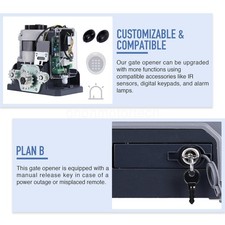 Smart Sliding Gate Opener with IR Sensors Remote Controls 3300lb 550W Motor
