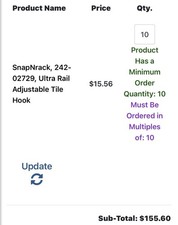 Be the first to review “SnapNrack Ultra Rail Adjustable Tile Hook 242-02729 Pack of 10” Cancel reply