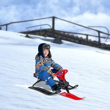 Snow Racer Sled w/ 2 Serrated Foot Brakes 220.5lbs Load Black+red Kids Adults