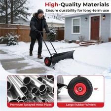 Snow Shovel with Wheels Metal Snow Removal Pusher Plow for Driveway Heavy Duty~