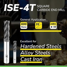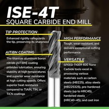 SPEED TIGER ISE Carbide End Mill 1/8” – 4 Flute, Square Nose, AlTiBN Coated,