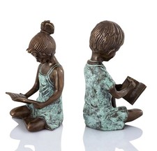 SPI Home Pair of Cast Brass Hand Painted Boy & Girl Bookends