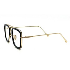 Square Glasses Men’s Black Gold Frame Clear Lens Eyeglasses Retro Style Trendy