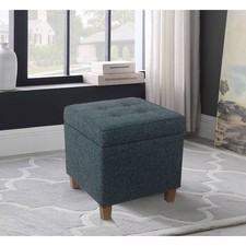 Square Tufted Faux Leather Storage Ottoman Textured Navy – HomePop