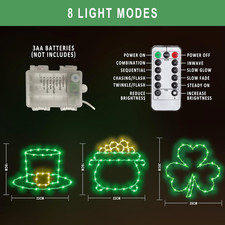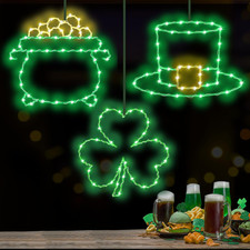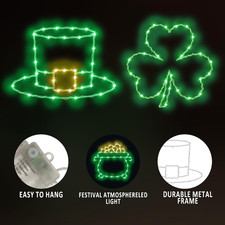 St Patricks Day Decorations Lights 3 Pack, Green Shamrock Hat Gold Pot Window Li