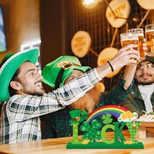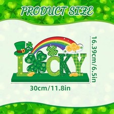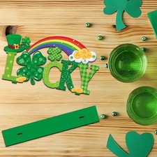 St Patricks Day Decorations Wooden Centerpieces,11.8x 6.5inch Green Saint