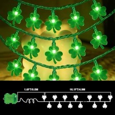 St Patricks Day String Lights, 16.1 FT 50 LED 50 LED Green Shamrocks Lights
