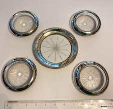 Sterling Silver Glass Coaster Lot Beaded 4 Frank M Whiting 4” & 1 Crown 5-1/4”