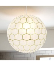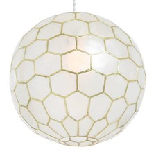 Storied Home 14″x13″ Capiz Honeycomb Globe Pendant Light Capiz White