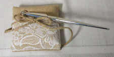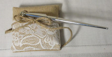 Studio His & Hers Guest Pen Burlap & Lace With Silver Pen