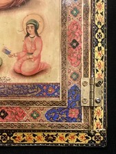 Stunning Mid East Islamic Papier Mache Qajar Style Mirror Case