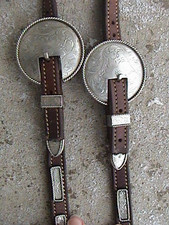 STUNNING VINTAGE SILVER ROPE EDGE BIG BUCKLES BIT CLIPS SHOW BRIDLE HEADSTALL