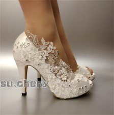 su.cheny Heels satin white ivory lace Gypsophila open toe Wedding Bridal shoes