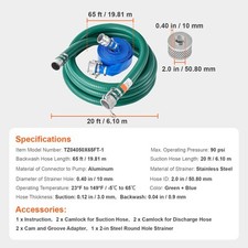Suction Hose Kit for Water Pump 2 in x 20 ft Green/65 ft Blue Hoses
