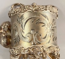 Super Fancy Antique Van Bergh Silver Plated Napkin Ring Naked Baby w/Diamond Cut