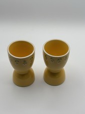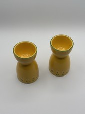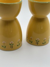 Teleflora Ceramic Egg Cup Set of 2 Yellow Floral Design Vintage 1985