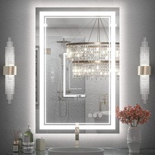 Tempered Glass LED Vanity Mirror, Double LED Strips, UL Listed LED Driver,