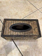 Thai woven Straw Rattan Bamboo Rectangular Tissue Box Cover Elephant