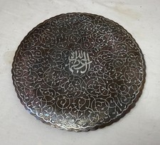 Thick antique handmade Middle Eastern sterling silver copper decorative plate