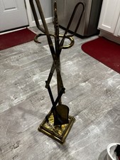 This item is a vintage brass fireplace tool set, typically featuring tools