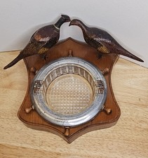 Thomas Schroeder Carved Pheasant Pair Ashtray Michigan Folk Art decoy mini