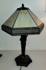 Tiffany-Style Table Lamp Mission-Design Art Glass Lighting 2 bulb sockets