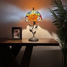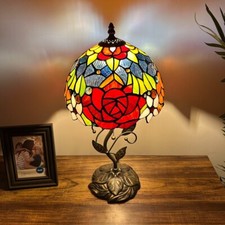 Tiffany Style Table Lamp Stained Glass Rose Flowers LED Bulb 10″W*10″D*20″H
