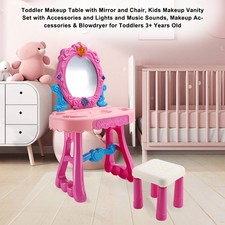 Toddler Makeup Table with Mirror and Chair Kids Vanity Set w/Blowdryer for 3+