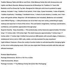 Be the first to review “Toddler Makeup Table with Mirror and Chair Kids Vanity Set w/Blowdryer for 3+” Cancel reply