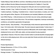 Be the first to review “👍Toddler Makeup Table with Mirror and Chair Kids Vanity Set w/ Blowdryer for 3+”