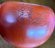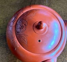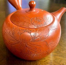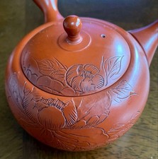 Tokoname Ware Kyusu by Master Shoji Umehara – Shoryu Red Clay Peony Carving