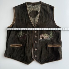 Traditional Tyrolean Trachten Embroidered Leather Antler Button Lined Vest sz L