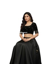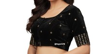 TRADITIONINDIA Women’s Saree Blouse, Black Velvet Sari Blouse, Black Sari Top