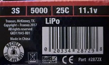 Traxxas 2872X Power Cell 5000mah 3S 3-cell 11.1V Volt LiPo Battery