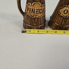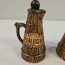 Treasure Craft Barrel Oil & Vinegar Set With Copper Rings Rustic Mid Century