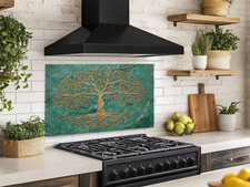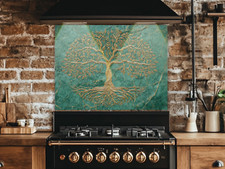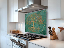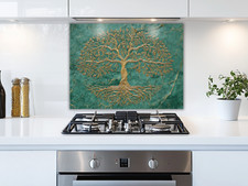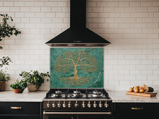 Tree of Life Splashback Gold Design on Green Marble Toughened Stove Backsplash