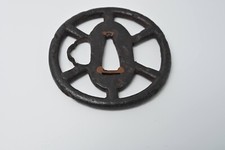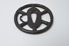 Tsuba Japanese antique iron Mumei Kuruma sukashi openwork design Edo era