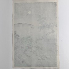 TSUCHIYA KOITSU (1870-1949) Woodblock Print / FULL MOON AT AKASHI BEACH / 10×15