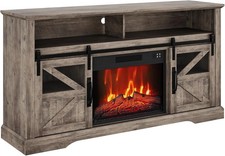 TV Stand with Electric Fireplace Insert, Sliding Barn Doors Media Console Gray