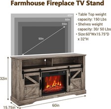 Be the first to review “TV Stand with Electric Fireplace Insert, Sliding Barn Doors Media Console Gray”