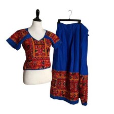 Two Piece Lehenga Embroidered Set Crop Top Long Skirt India Womens S/M