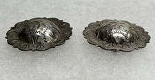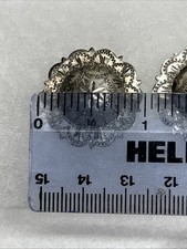 Two Vintage Conchos Etched Ornate Intricate Floral Design Marked Sterling