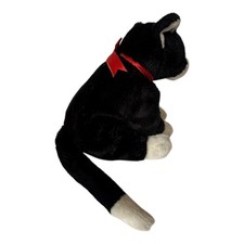 TY Beanie Buddies Black & White Cat Soft Toy w Red Bow Vintage 1999