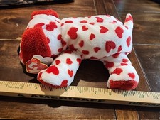 Ty Pluffies Beanie Sweetly Puppy Dog White Red Heart 10″ Plush Stuffed Animal