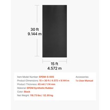 Uimoso 15 x 30 ft EPDM Rubber Roofing Roll, 45 mil for RVs, Roofs, and Ponds