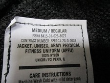 US Army APFU Jacket & Pants Set Medium/Regular Black Nylon UNICOR New CW PTs