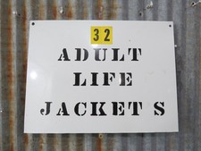 Used 9 inch X 12 inch ADULT LIFE JACKETS Metal Sign Tiki Bar Cabin (I2B186D)