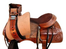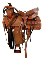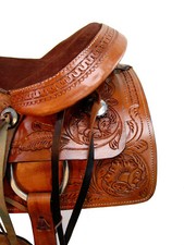 USED TRAIL SADDLE 15 16 17 18 WESTERN HORSE PLEASURE FLORAL TOOLED LEATHER TACK