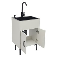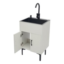 Utility Sink with Cabinet Laundry Tub Stainless Steel Sink with Faucet White