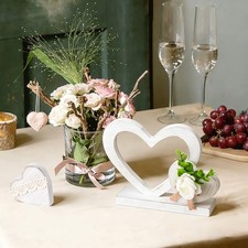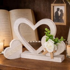 Valentine’s Day Heart Rustic Wood Table Centerpiece, White Valentines